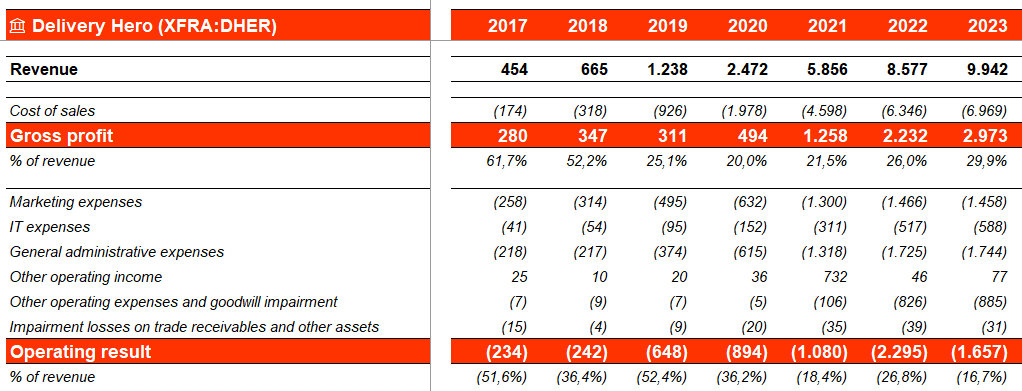 En relación al modelo de @arturop para ver las “futuras Amazon” que están invirtiendo a tope pero no se ven los beneficios, mirando Delivery Hero me he acordado un poco de ese comentario.