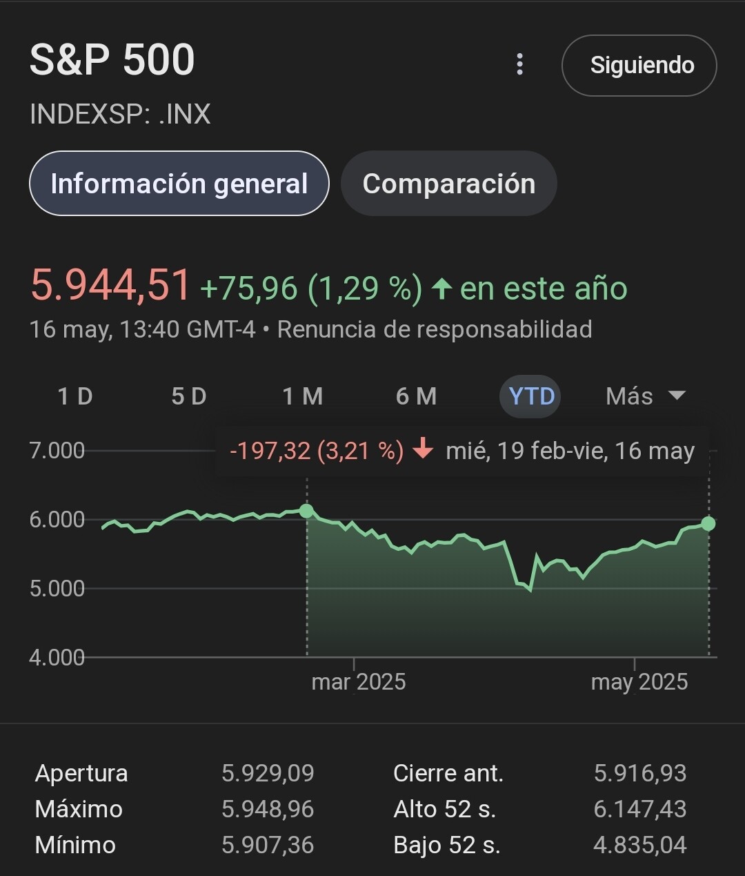 Por suerte o por desgracia no pasé la crisis del 2008 invertido. Solamente he sobrepasado la del 2018 que sinceramente fue la más difícil de atravesar para mí, la del COVID, la inflacionaria de 2022 y ahora esta que seguramente recordemos como la arancelaria.