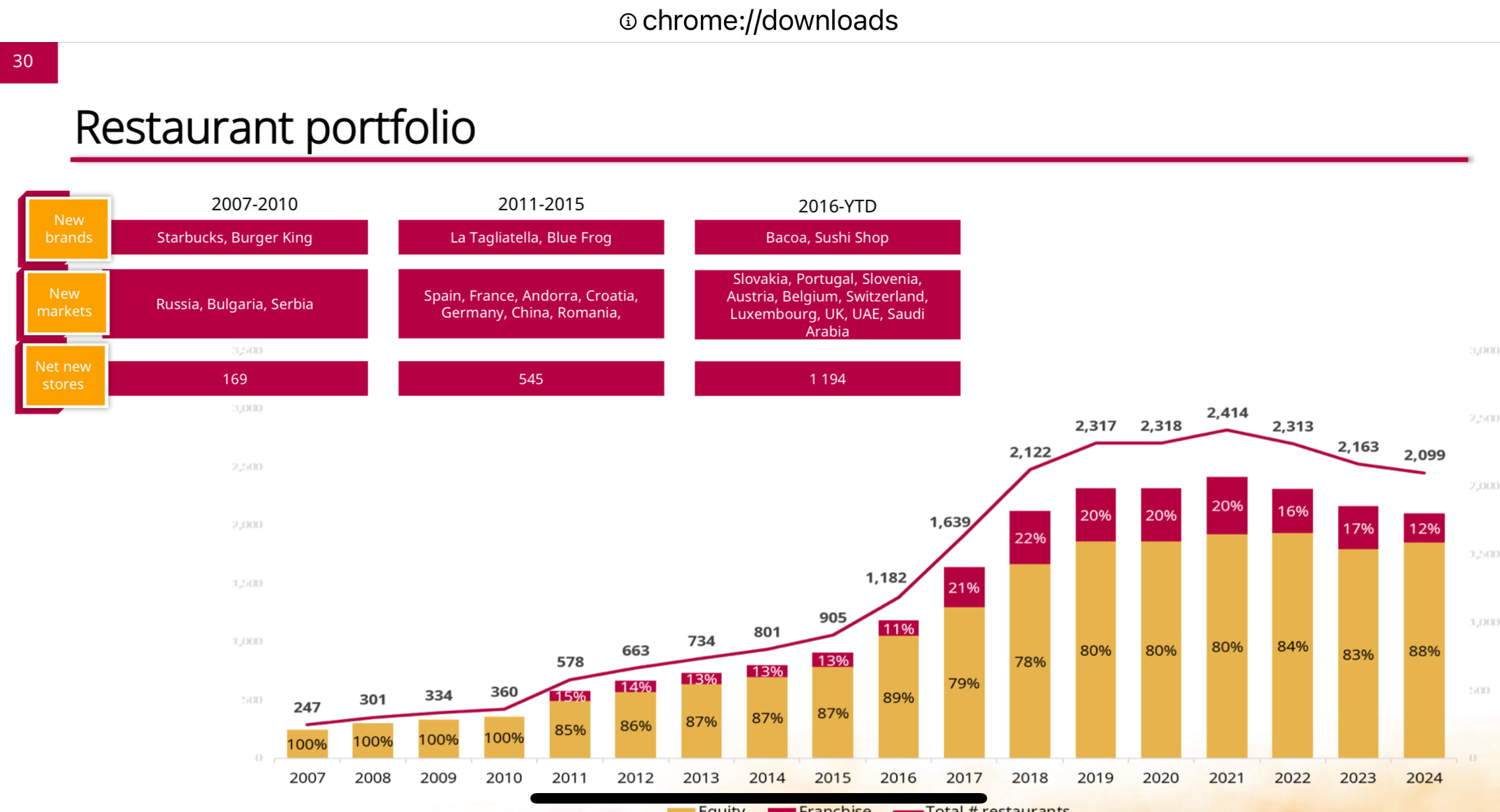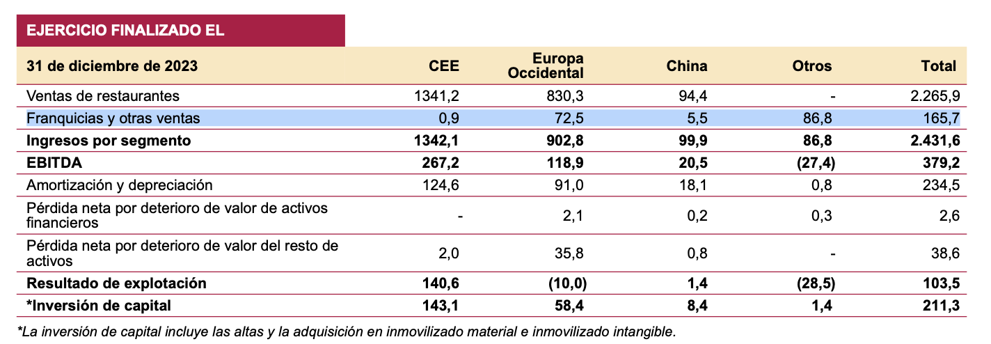 El resto supongo si es en parte por el cierre neto de 12 franquicias de 250 2024 a 238 2025 (sobre todo en Sushi Shop).
