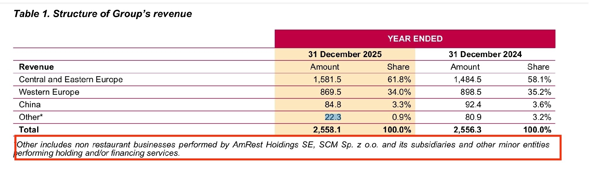 Creo metes ventas de franquiciados “y otros”. Y parece es de ese otros de dónde viene la mayor parte de la bajada por la desconsolidacion de SCM: vendieron el 51% a final del primer trimestre 2025, por lo que mientras en 2024 SCM aportó 80,9 M de euros durante todo el 2025 solo se contabilizaron 22,3 M del primer trimestre.