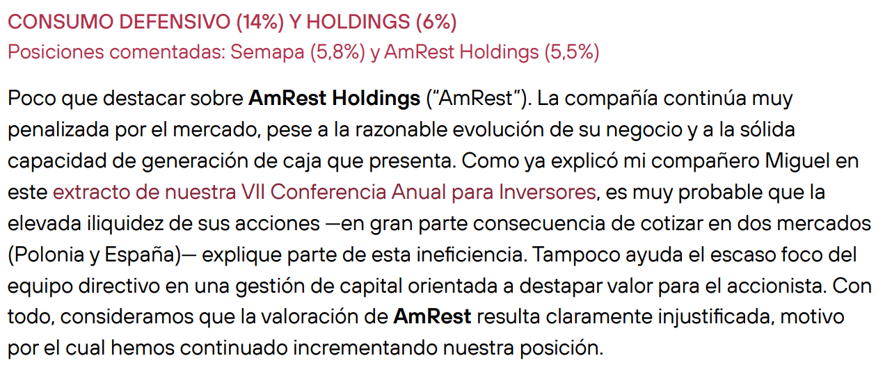 La tercera posición en cartera es Amrest, ¿qué ven en ella?
