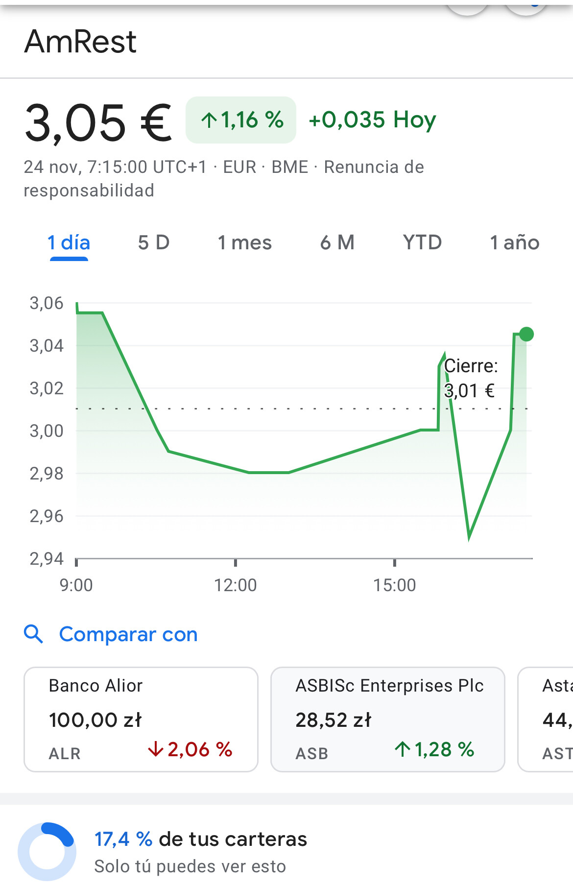 En línea con lo que comenta Miguel en la conferencia, salvo por las recompras. Creo que con ese % ya de propiedad, si van reduciendo acciones van a dejar la empresa muy seca de liquidez.