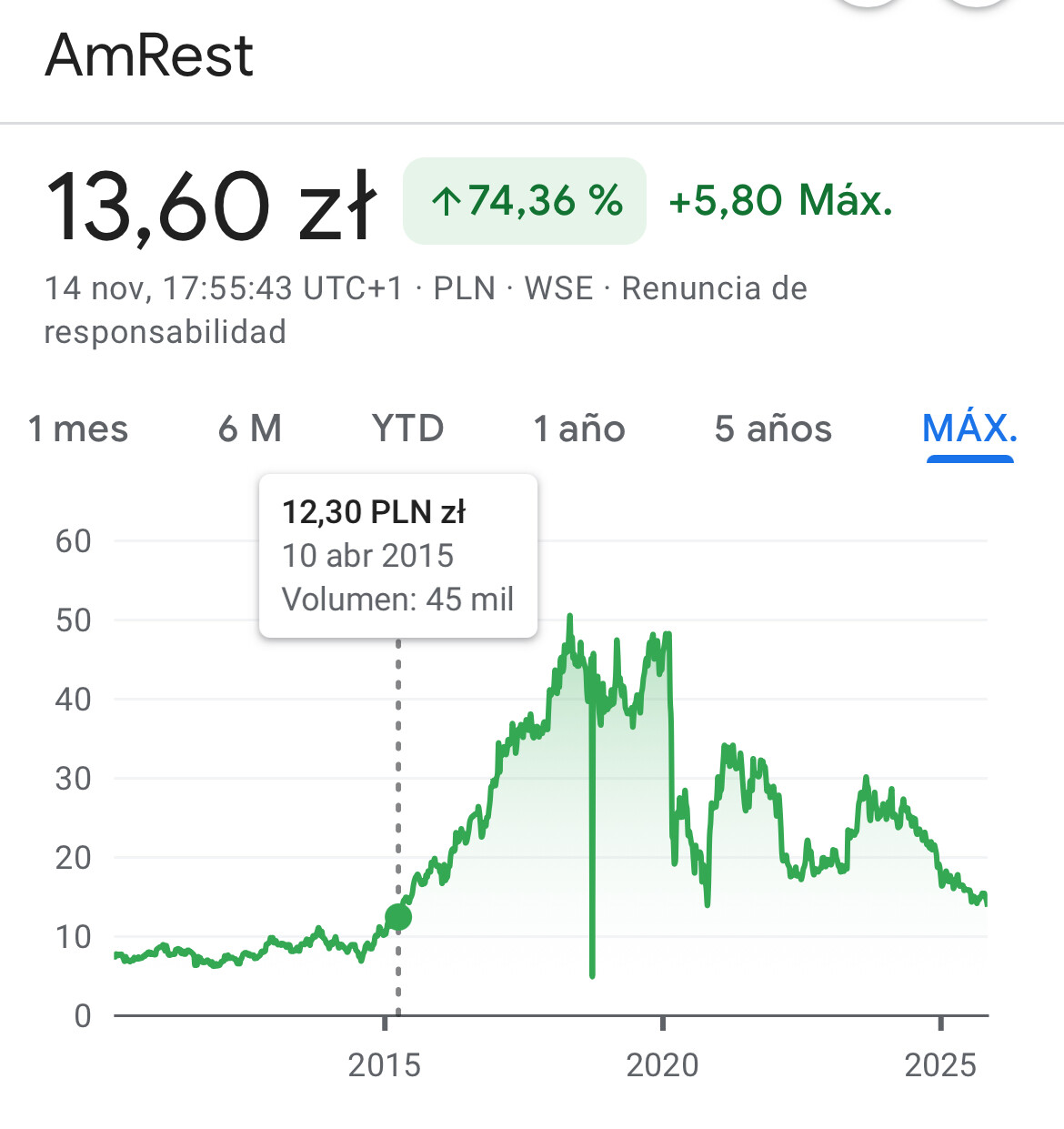 M. R.: Aquí hay un problema de consumo en Europa, sobre todo en las principales economías: Alemania y Francia. Eso está pasando factura a todo el sector de consumo europeo, lo vemos en alimentación y en las grandes cadenas tipo Domino’s: todas caen, todas están dando malos resultados. Pero Amrest tiene mucha presencia en Europa Central y del Este. Cotiza en Polonia, que es donde la compramos por ser más líquida. Su sede estuvo allí hasta 2018, país donde se fundó. Y en todos esos mercados del Este la compañía está yendo bien. A pesar de haber cerrado algunos restaurantes por reestructuración y de haber salido de Rusia, hoy está en récord de beneficios operativos.