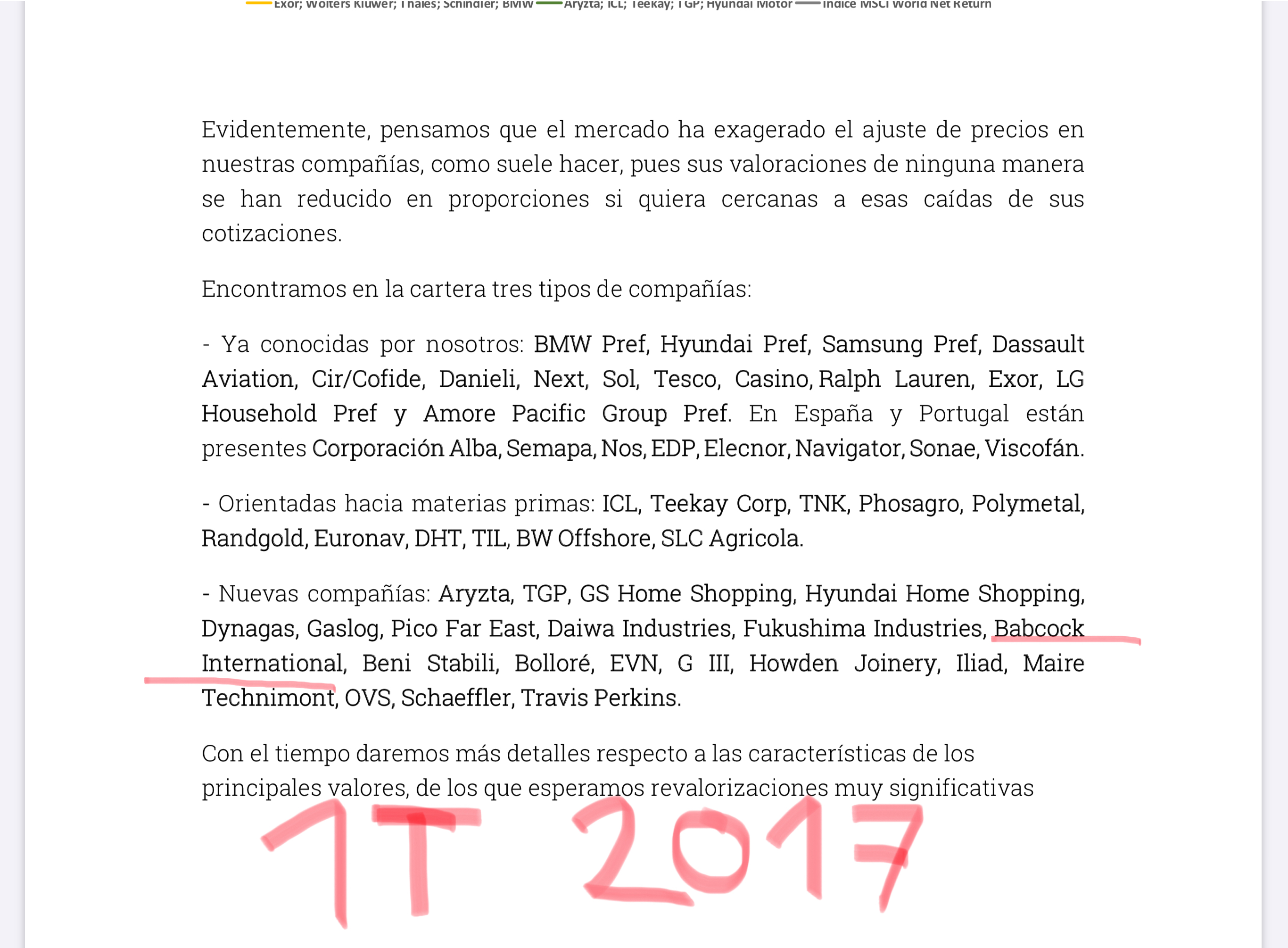 Al menos Babcock si que se abordó, sucintamente, en la última carta trimestral. No como Aryzta. Paramés comentó que esperan que más que triplique en los próximos años.