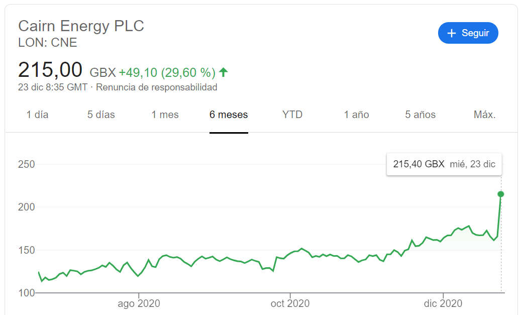 Veo que Cairn Energy ha cerrado con un +22%.