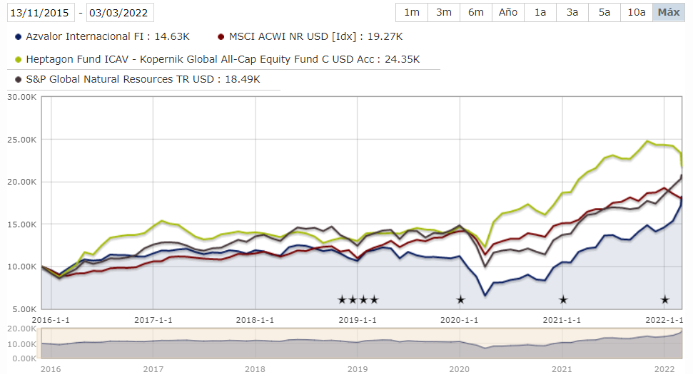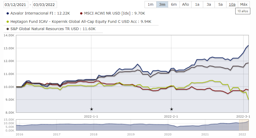 Por supuesto que hay también una parte de suerte, pero no solo es suerte: se guardaron de entrar en valores rusos por sus convicciones. A otro gran fondo, el Heptagon Kopernik, que creo llevaba mucha energía rusa le deben estar haciendo un roto tremendo ahora mismo…
