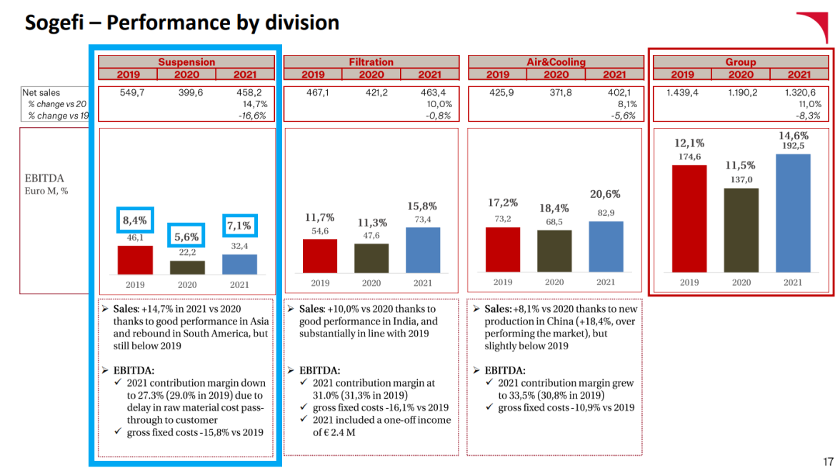 La verdad es que el día que consiga CIR vender Sogefi o que al menos, la división que tiene ésta de suspensiones deje que quemar caja con esos márgenes vergonzosos, va a ser otra historia la compañía:
