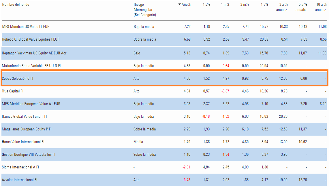 Sinceramente, no lo veo una cosa extraordinaria. Y se me ha dicho en ocasiones por acá que mis retornos objetivo son excesivamente optimistas, o que “endioso” a ciertos gestores. Pero honestamente, no veo gran cosa lo de Cobas en 2024 hasta ahora. Será que nos hemos acostumbrado a los dátiles y al agua