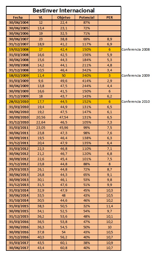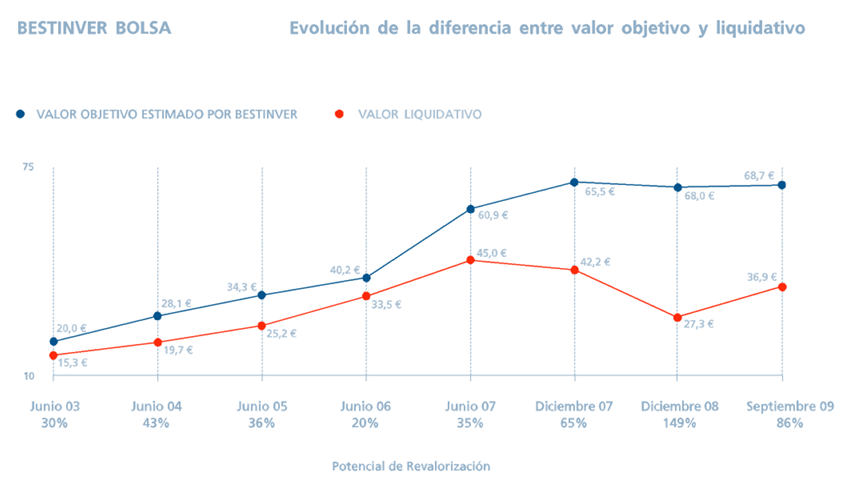 Interesante, no sabía que Bestinver en su día también publicaba sus valores objetivo (VO) y, como diferencia con el VL, el potencial de revalorización. Me pilló joven y todavía no invertía por entonces.