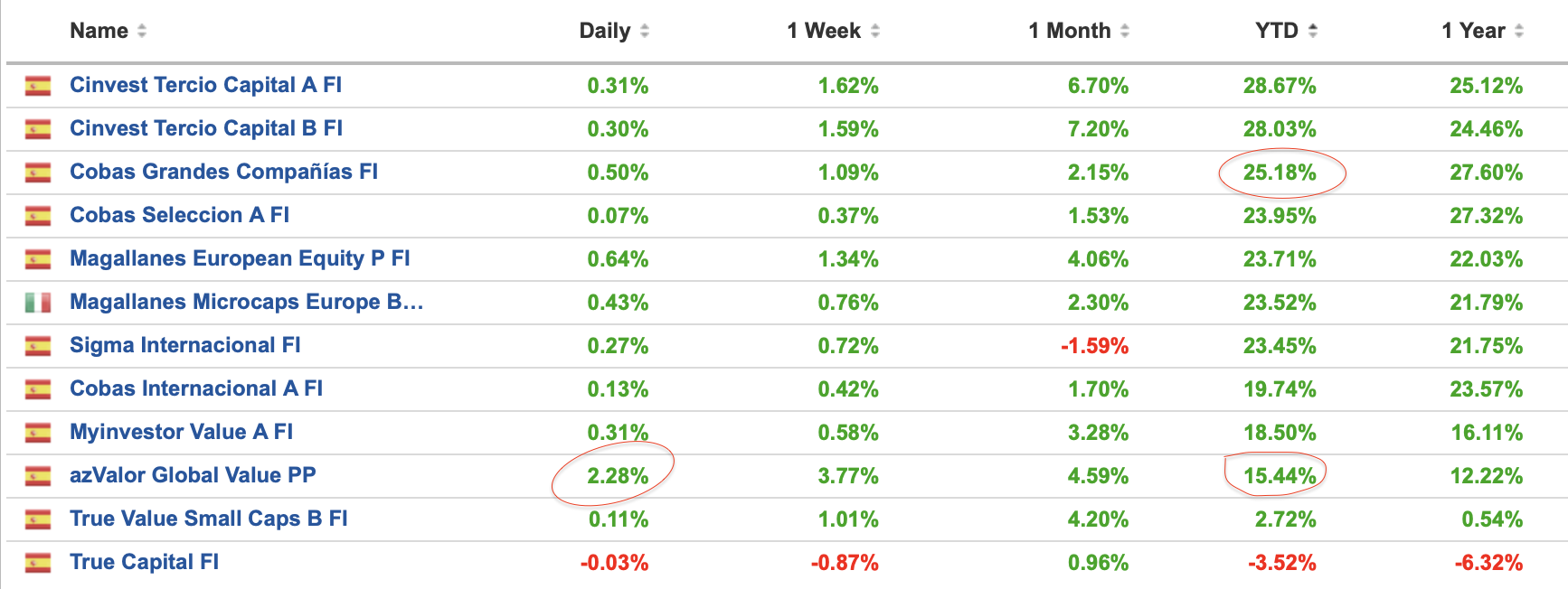 El Cobas GC poniéndose en +25%Ytd, que para muchos va de tapado pero para mí alberga cierto valor relativo, al contar con un potencial de revalorización ligeramente mayor a los otros fondos de Cobas actualmente, y con una comisión para clientes antiguos 25 puntos básicos menor.