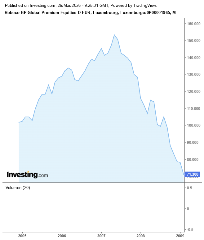Aunque lo pareciese no iba por ahí, sino porque si se crea un fondo que basa su estrategia en vender lo que sube bastante y comprar “barato barato”, todo parece que no debe sorprender mucho un bajo rendimiento en su tramo temporal inicial (p.e. el Robeco tardó la tira de años también en duplicar).
