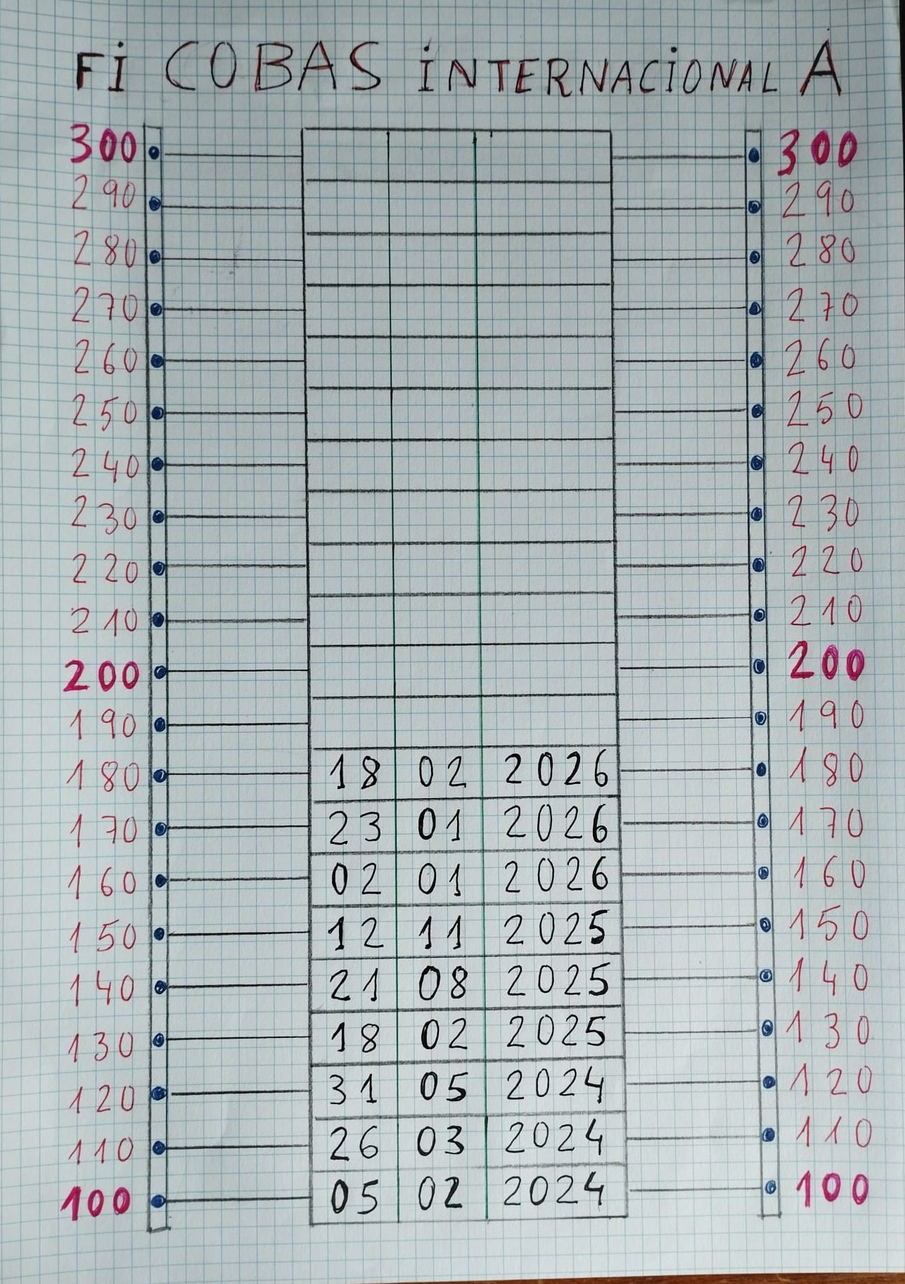 Pues bien, estaba pensando romper la hoja que adjunto porque dudaba de poder algún día verla completa, pero con el chute de ánimo tras oír al Jefe lo anterior no solo no la romperé, sino que veo que con una gran probabilidad (p>0.99) la voy a tener entera cubierta antes del fin del 2030.