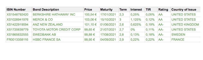 Esta es la situación actual (02/02/22) de la parte de bonos corporativos a corto plazo: