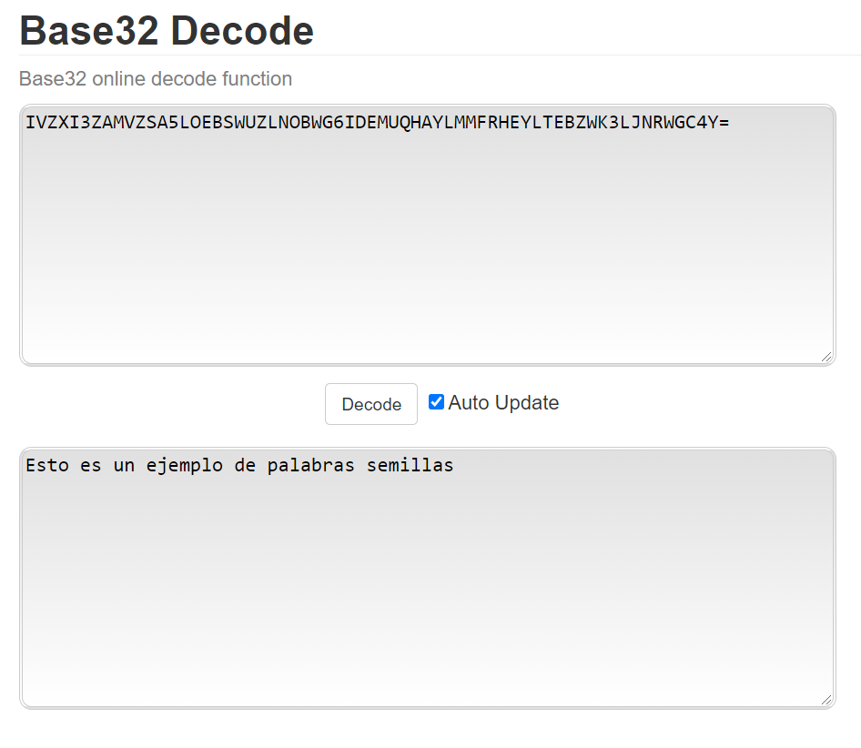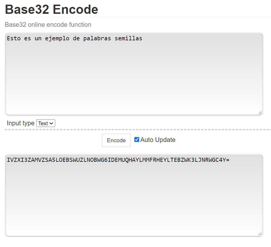 Entiendo que su ejemplo sería para codificar las 24 palabras semilla y poder guardarlas en un archivo digital.