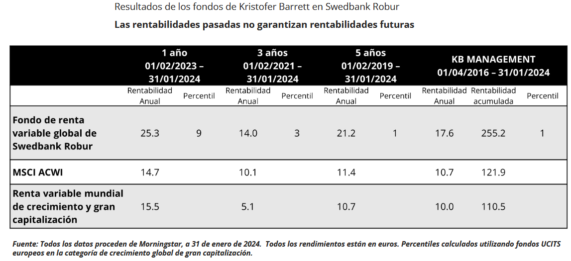 Les adjunto la rentabilidad previa de su nuevo gestor: KRISTOFER BARRETT proveniente del Swedbank Robur
