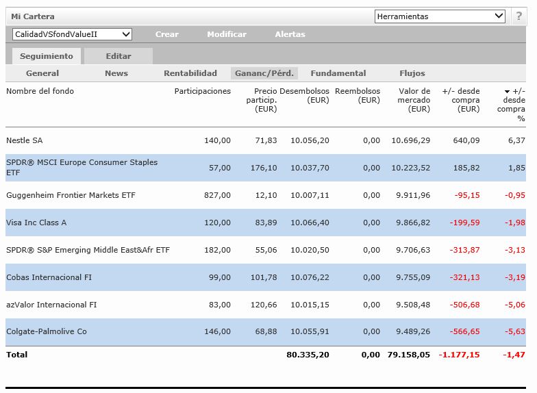 Actualización semanal cartera con un trimestre a sus espaldas.