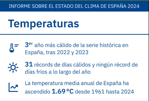 Algunos datos del Informe del Clima de España de 2024 de la AEMET: