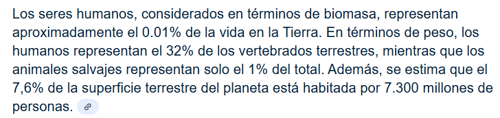 No se trata de que la biomasa, la carne humana, sea solo de 0,1 % por lo que entonces nuestra biomasa no puede ser responsable de nada, o que ocupamos el X % de suelo.
