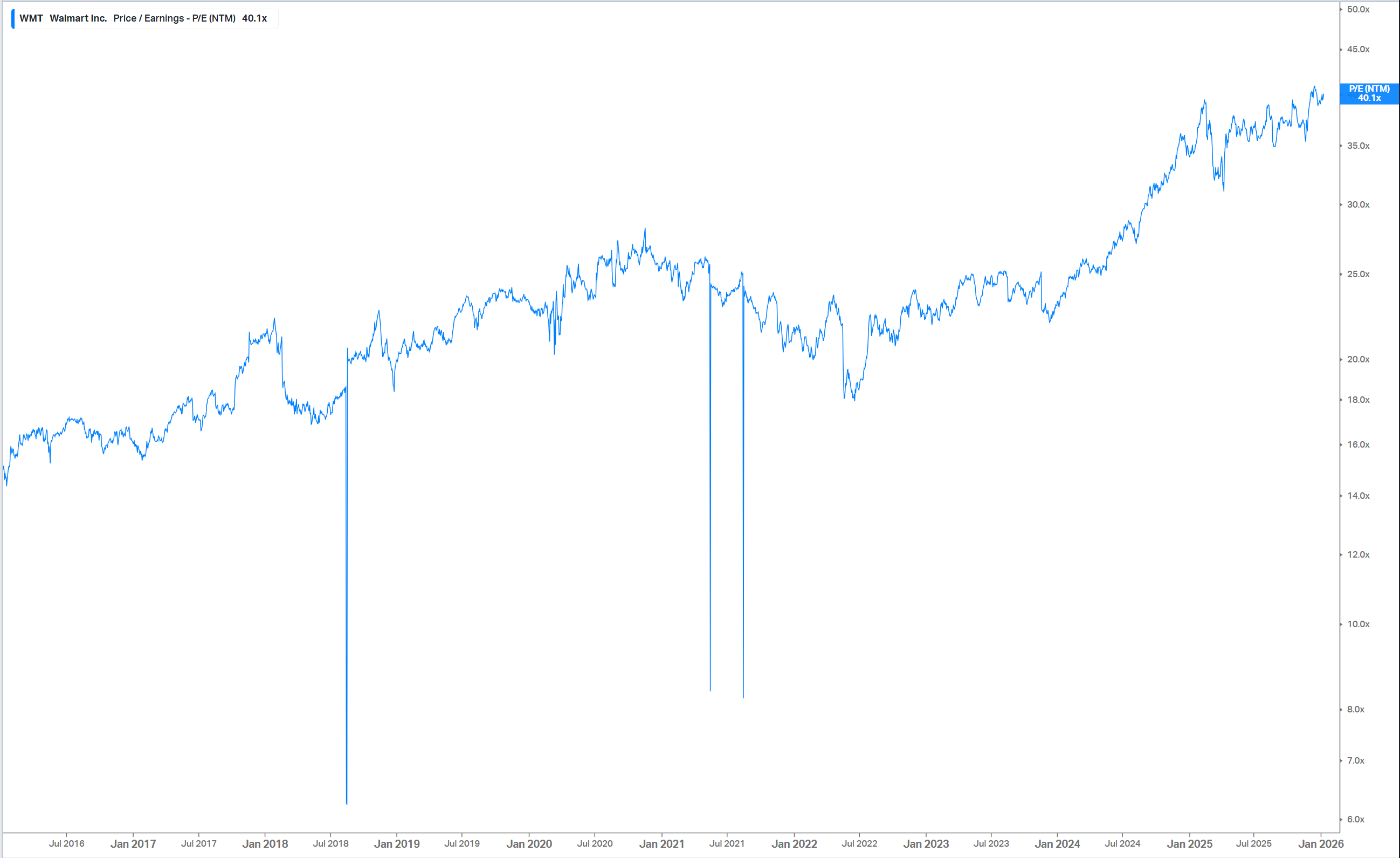 40x beneficios, para algo que va a crecer a ¿dígito medio? los ingresos. La expansión de múltiplos en esta última década ha sido estratosférica.