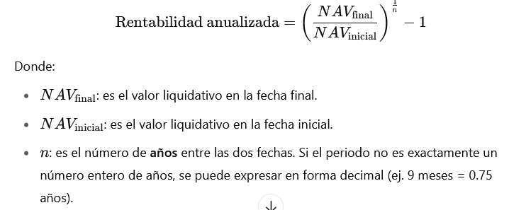 Con los graficos se puede obtener la “RENTABILIDAD ANUALIZADA”, sin embargo es necesario extraer de las graficas el NAV inicial y final e introducirlos en una formula con exponenial fraccionario: