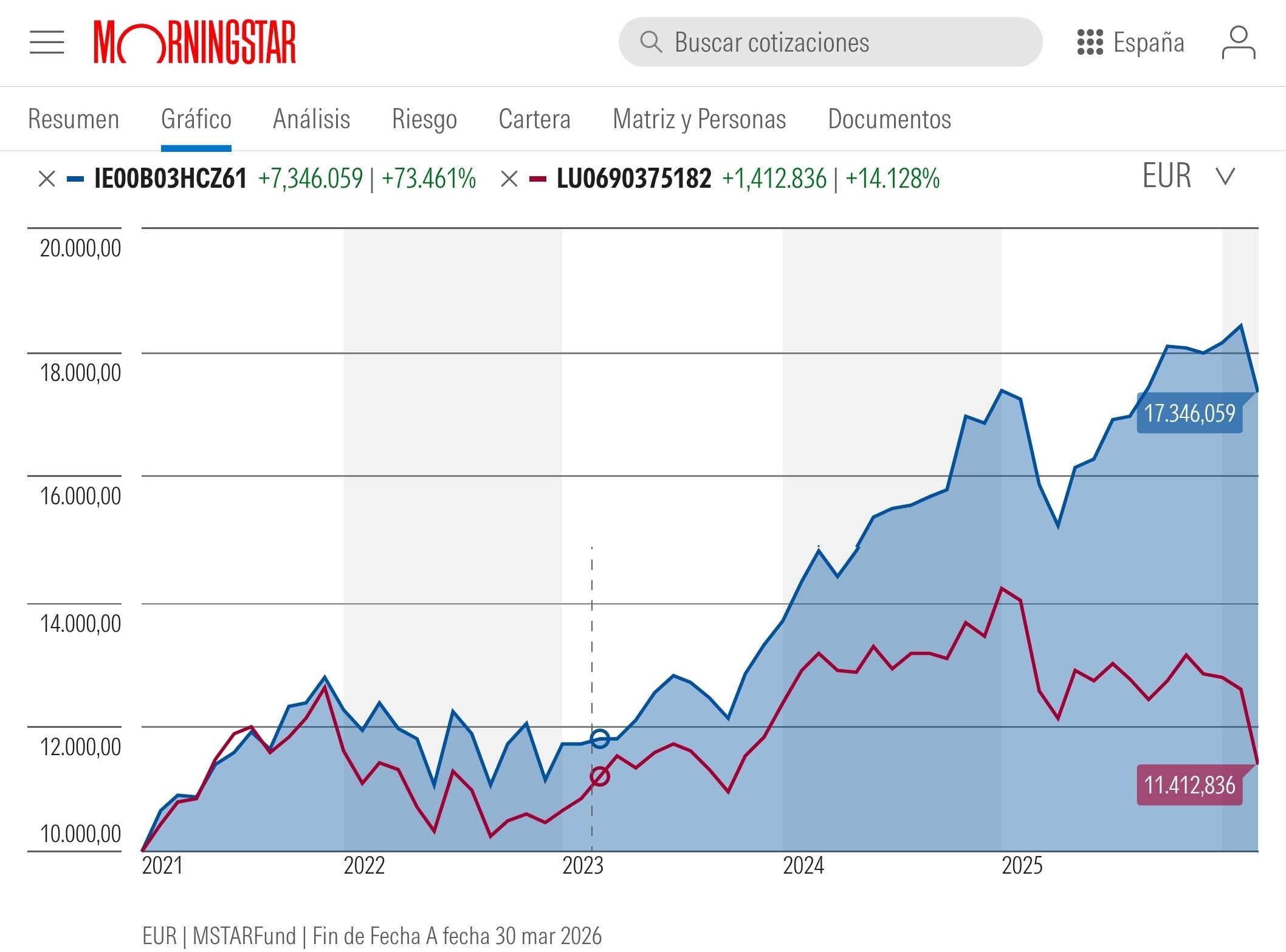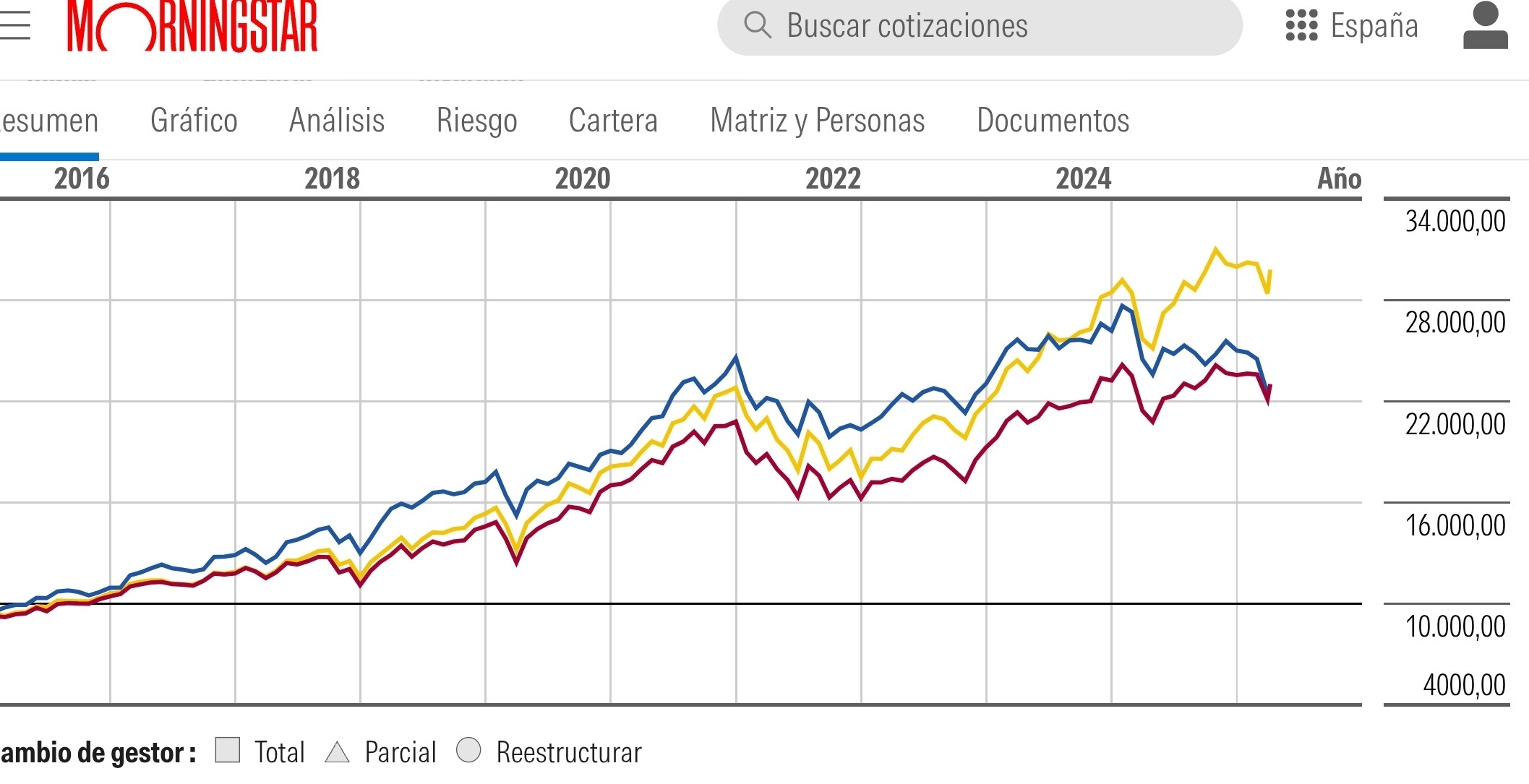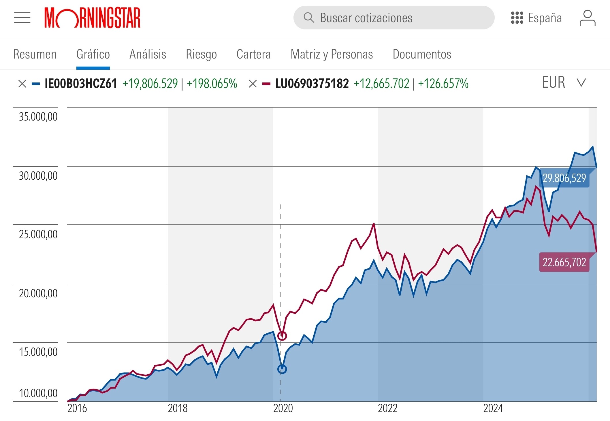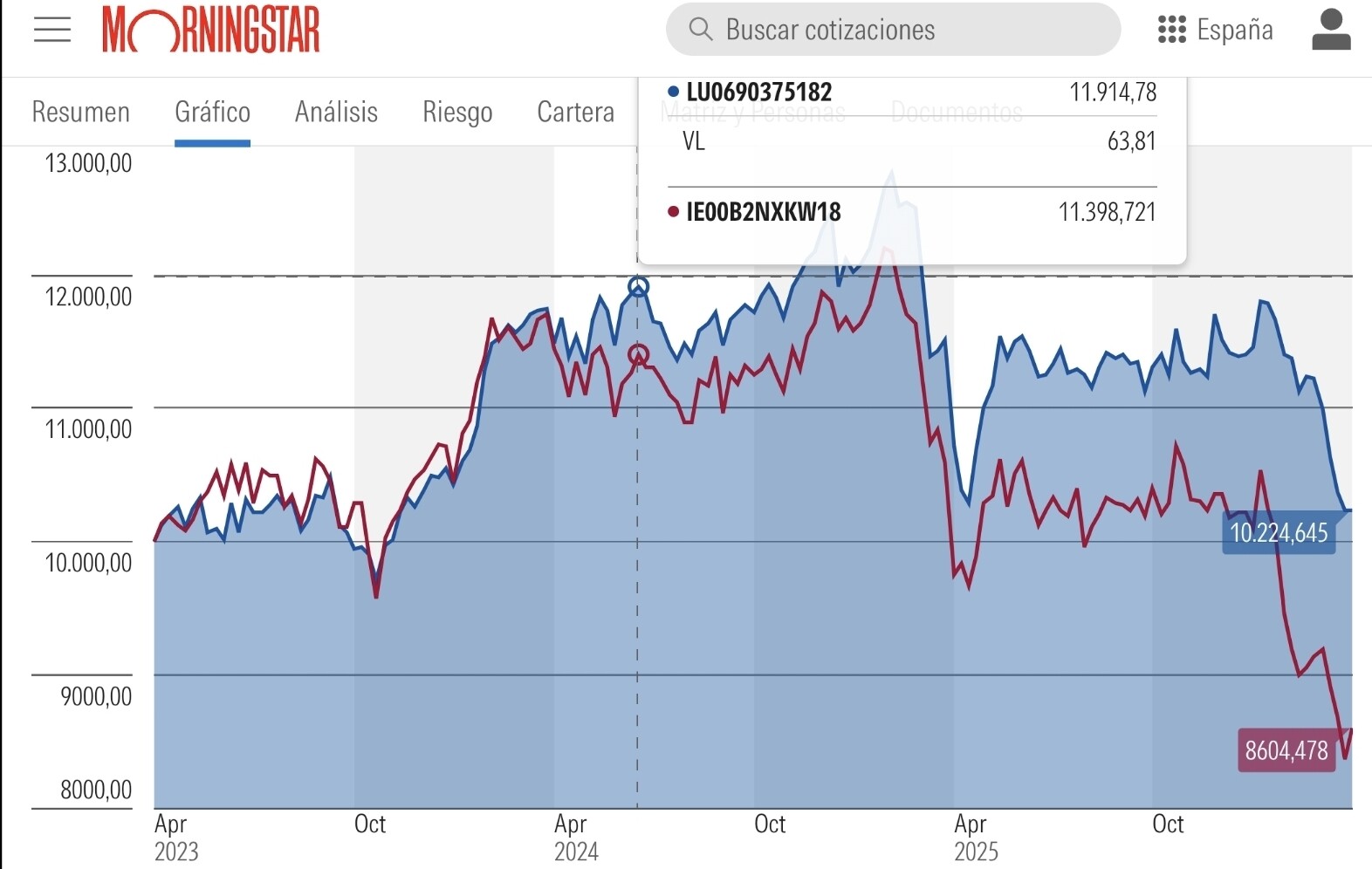 Ultimamente el fondon ha caido un - 20% respecto de su maximo de 31-1-25