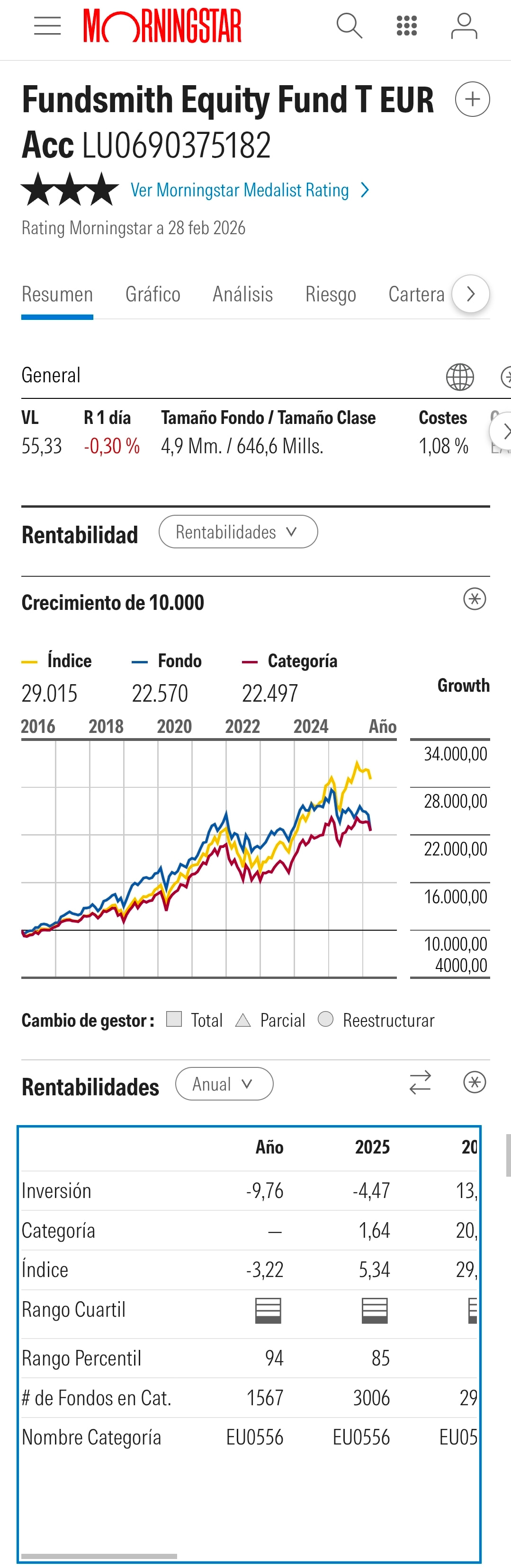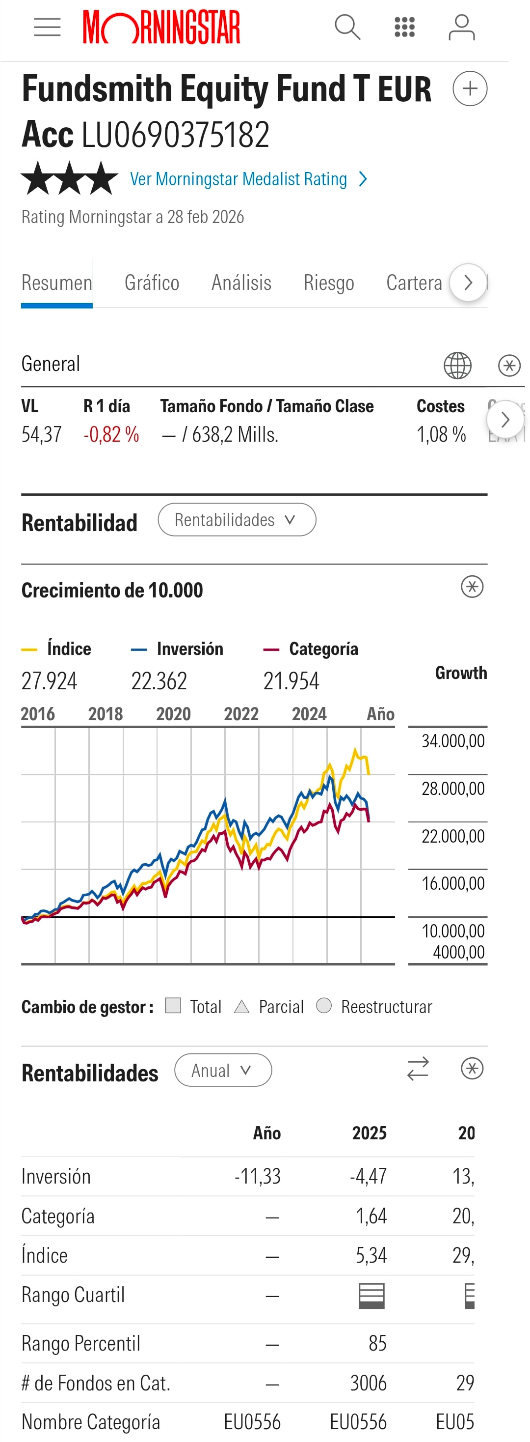 De acuerdo con la ultima conferencia del FUNDSMITH, aunque ahora va mal, con un -11.8% en el ultimo año, y un + 0% anualizado en los ultimos 3 años, esta posicionado para sobrevivir la debacle futura de la AI y de la inversion pasiva masiva actual.