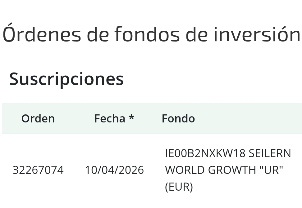He dado orden de compra del Seilern World Growth EUR U R hoy antes del cierre. Espero que se ejecute el lunes.