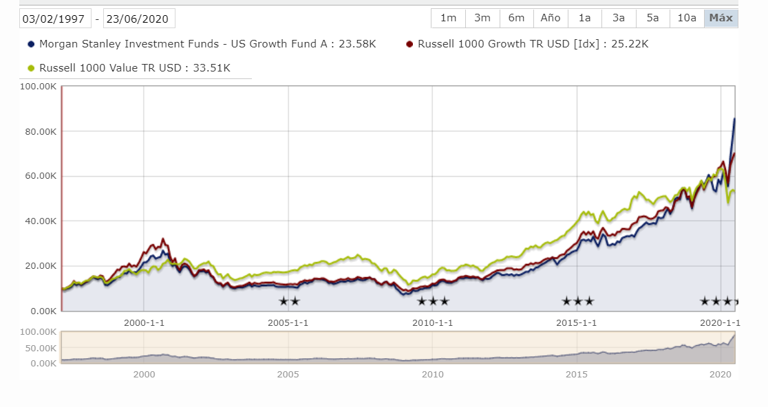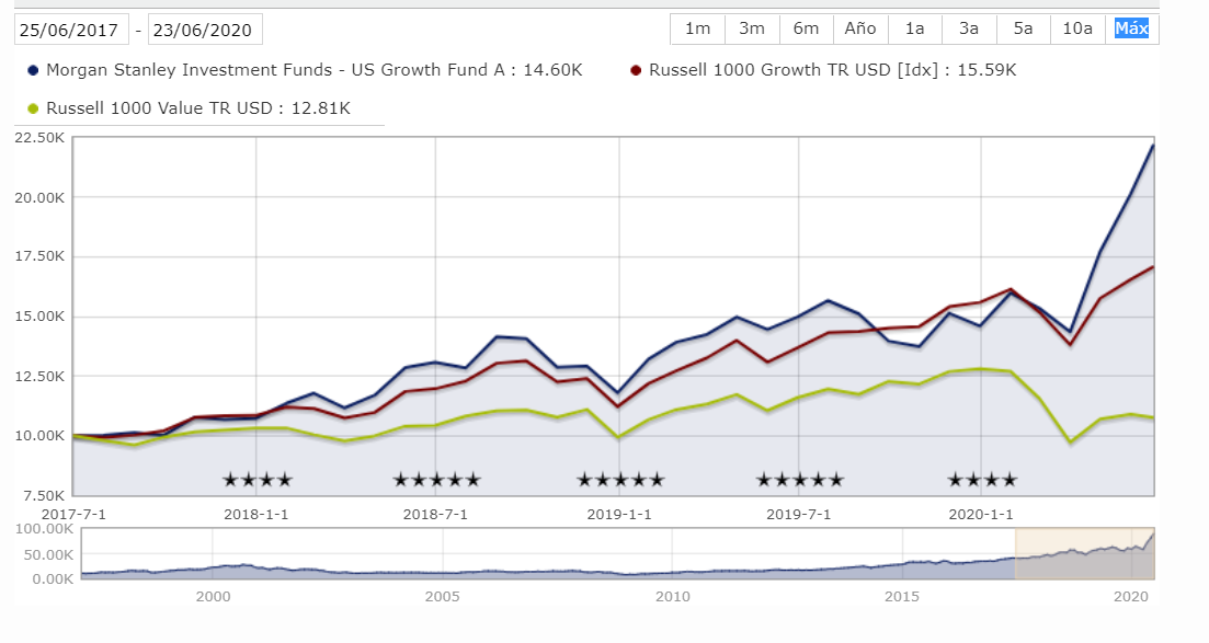 Siguiendo con el hilo, estaba viendo los tremendos resultados del MS Inv US Growth, que este año lleva un señor 38 %.