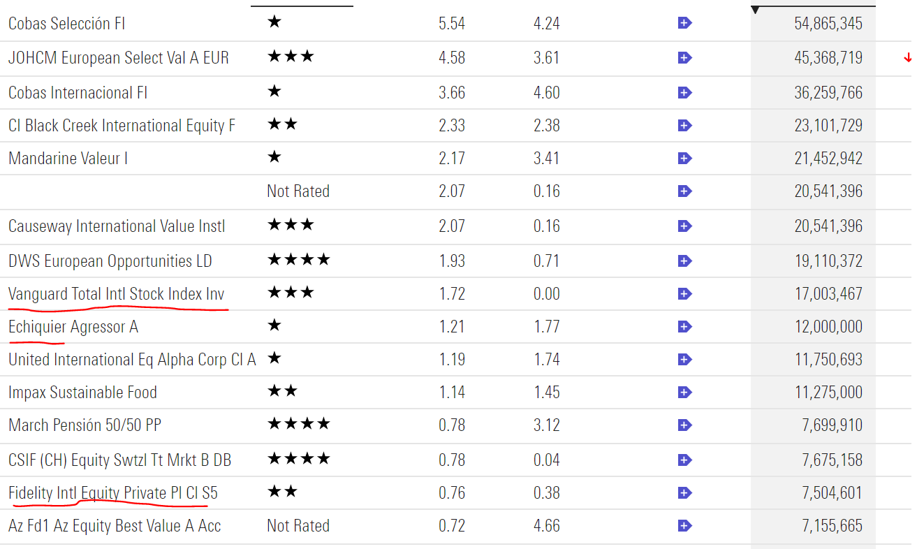 Además, podemos pensar que el fondo en concreto lo ha hecho mal, pero es que de la lista anterior, todos con rentabilidades anualizadas de más del 12 % a 5 años, no hay prácticamente ninguna diferencia en la travesía a través del desierto.
