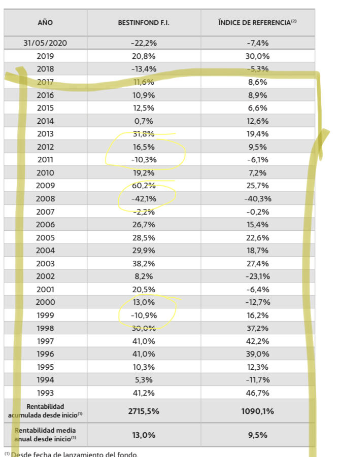Uno ve que bestinver hizo un 13% anualizado y se piensa que fue +13 todos los años.