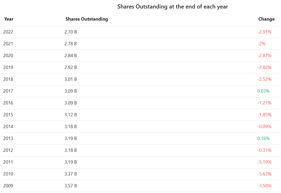 No obstante, esta empresa recompra acciones a buen ritmo, como se puede comprobar: