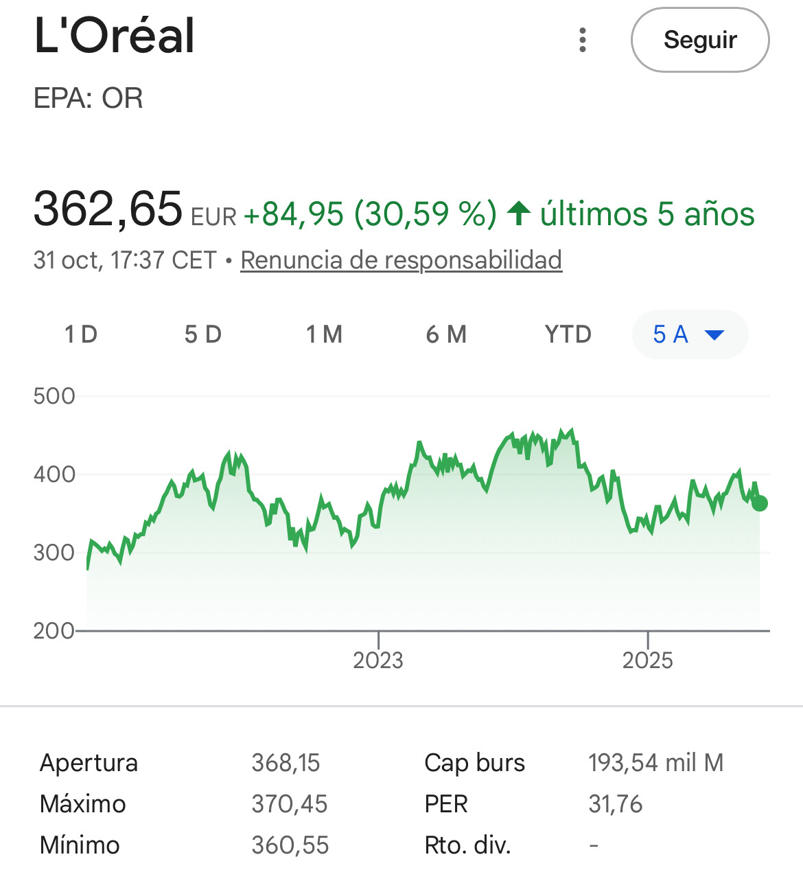 A inicios de este hilo hablábamos de que era imposible comprar Nestlé por debajo de 30 veces.