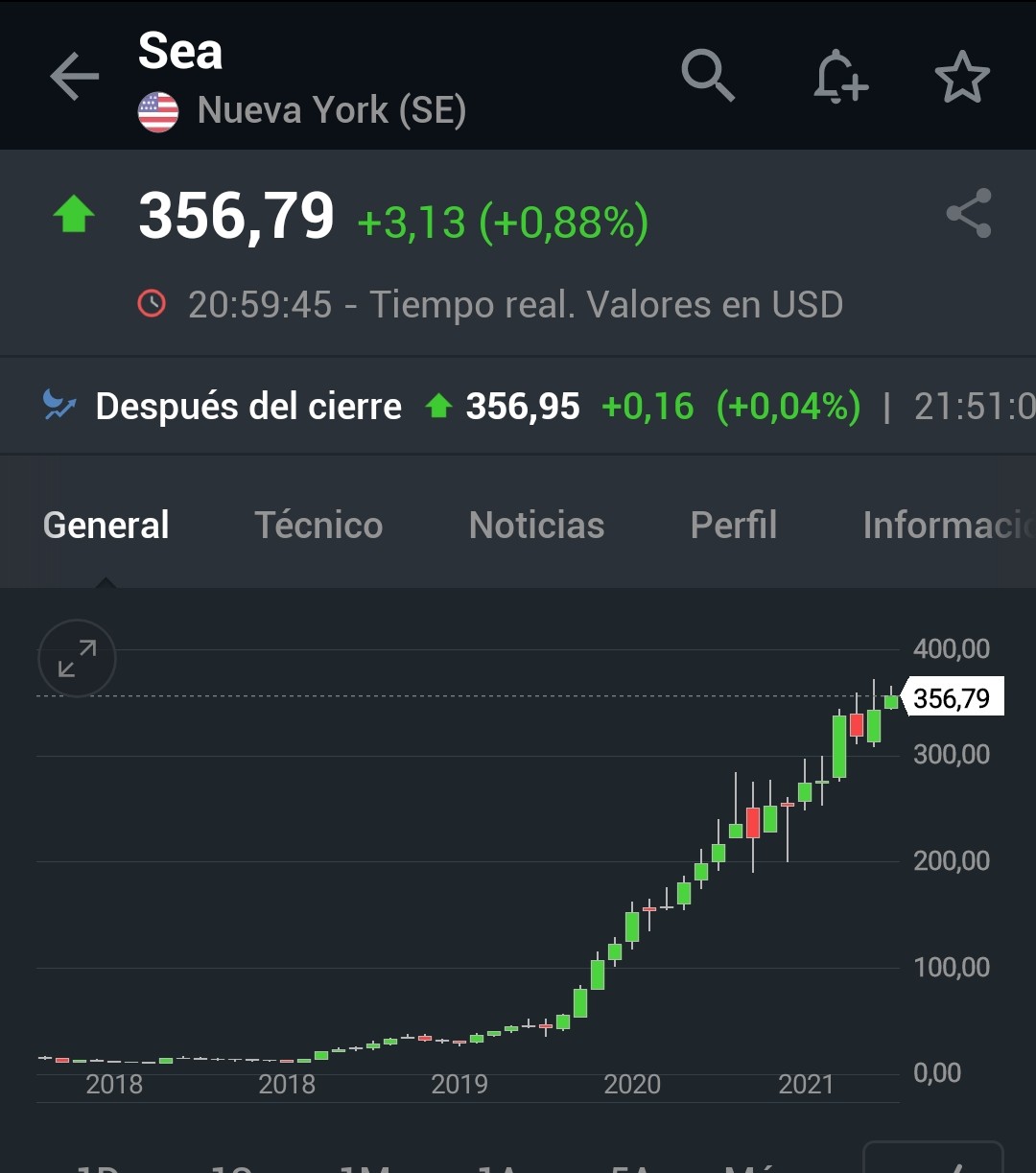 Yo tuve esta comprada a 35 creo recordar. Y me saltó un stop (por aquel entonces no sabía lo que hacía y “operaba”) a 42 dólares. Al menos no perdí dinero, pero cuando me dio por mirarla el otro día…