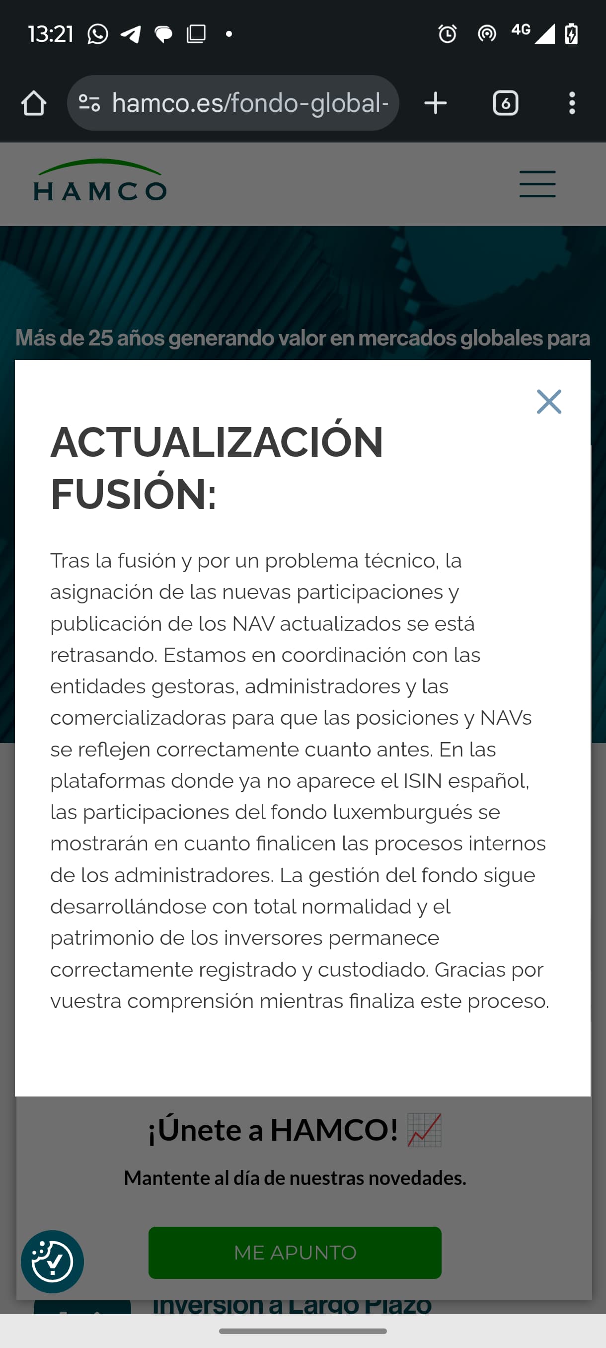 Gracias por la información. Ahora entiendo que en Myinvestor haya desaparecido mi participación en el fondo Hamco R. A ver qué pasa el lunes. Un saludo @cronopios