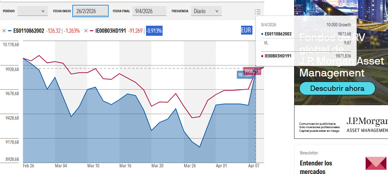 Está siendo un poco interesado en la selección de los datos. No digo que lo haga a posta. Pero un mes coincide justo con un periodo donde el fondo lo ha hecho muy bien. En cambio si alargamos algo más la foto unos días más ya sale menos bien.