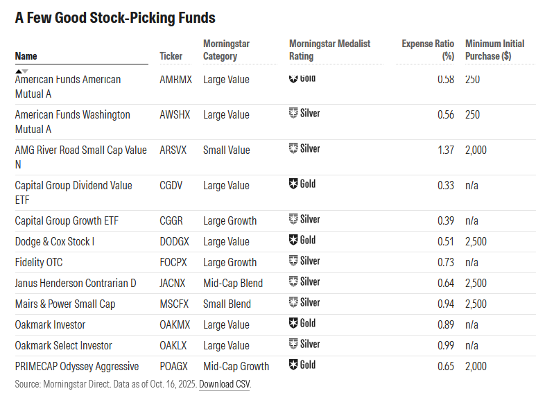 Recopilacion de Morningstar.com ( 21-10-25) de BUENOS fondos ACTIVOS