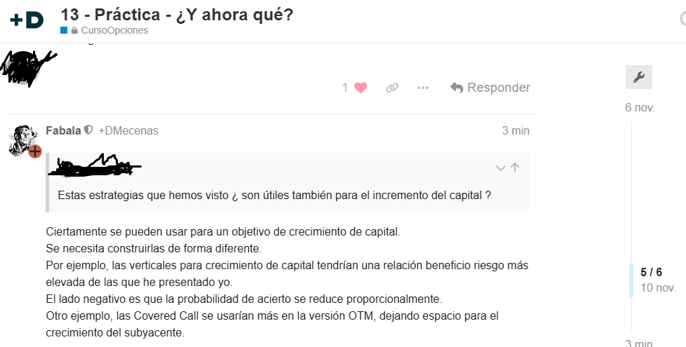 Buenos días. el tema de las opciones es algo que a mi me interesa pero opté por no hacer el curso porque la situación actual (trabajo y familía), (fulltime) me impide la dedicación necesaria y mantenida en el tiempo.