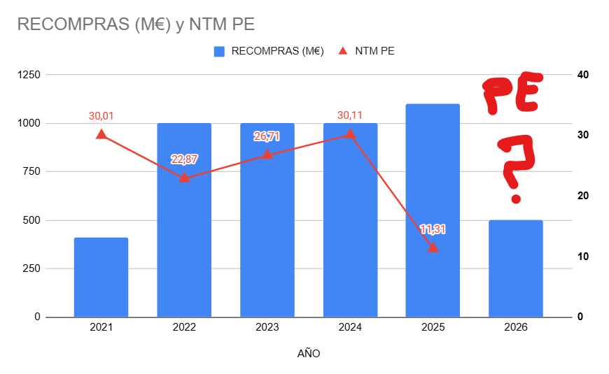 Otra empresa en la que, siendo ya un bicho enorme, ha ocurrido algo parecido con las recompras/divis/inversiones y el múltiplo al que suele cotizar.