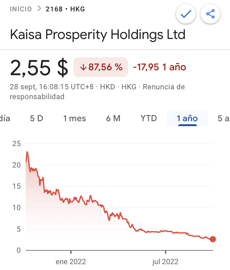 Otra que lleva buen golpe y que en su última reunión la veian para multibagger es Keck Seng. China en general ha sido un campo de exterminio de valores en los últimos años. Baba, y tantas otras, llevan también una buena tunda.