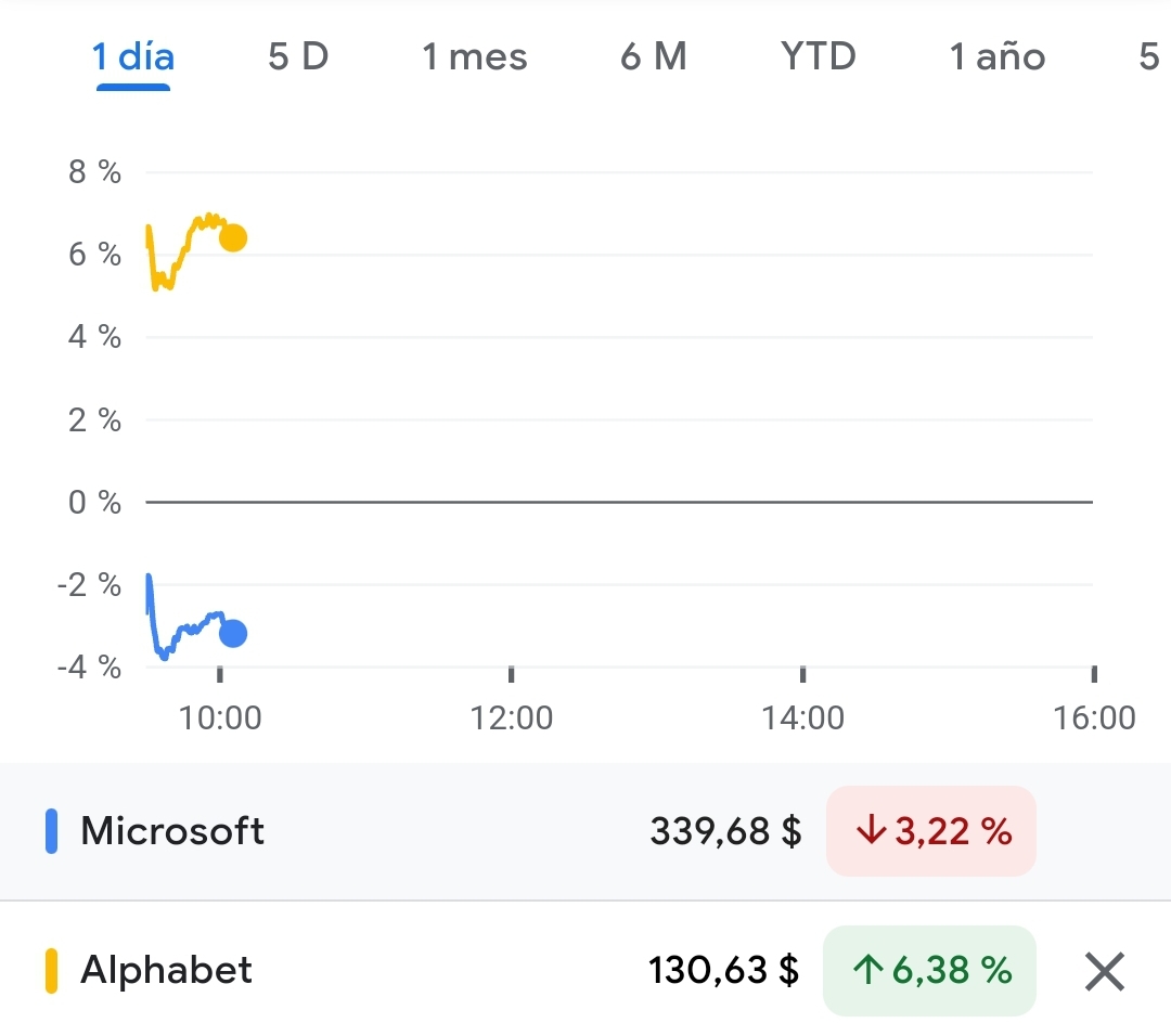 Me comentaba un amigo inversor que “solo” pasar de un 90 % de cuota a un 60 podía hacer mucho daño a Alphabet, que había que venderla. Pues sin duda se lo haría si lo logra Microsoft, pero ostras, no me parece nada fácil.