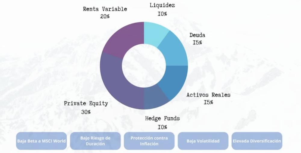 En este enlace está toda la información de los fondos en los que invierte. Es un fondo con mínimo de entrada de 100.000€, que invierte en fondos alternativos del mercado privado, en deuda privada, private equity, en inmobiliario e infraestructuras o hedge-funds, y que según la rentabilidad de los fondos internos, ofrecería un 9% anual de media, con volatilidades del 6% y caídas máximas del 11%
