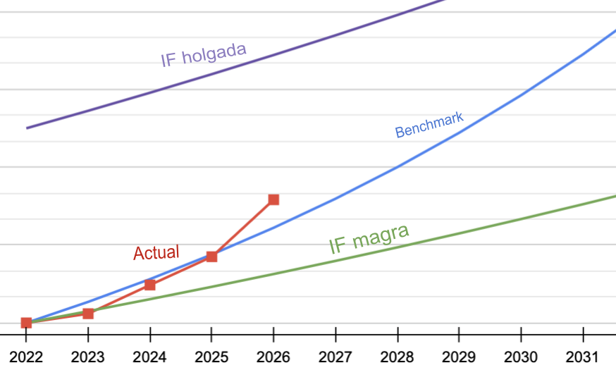 La foto de la IF, por consiguiente, sale favorecida en este momento, aunque ya sabemos por aquí cómo funciona esto. Precisamente recientemente me he estado planteando buscar una actividad a mitad jornada, de unas 20 horas semanales, a fin de, entre otras cosas, acelerar el tránsito hacia la IF holgada.