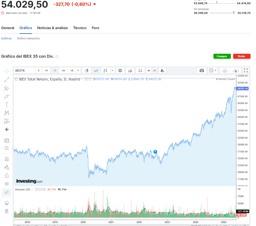 No me he parado a sacarlo, pero así a ojo parece que el Ibex Total Return está en unos 54K y en unos 25.000 hace 7 años. Así por la cuenta de la vieja una inversión de 240K andaría por unos 518K hoy.