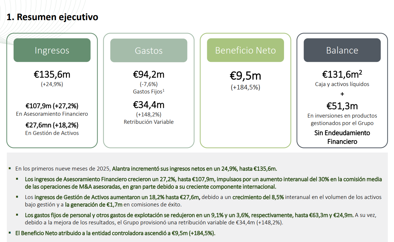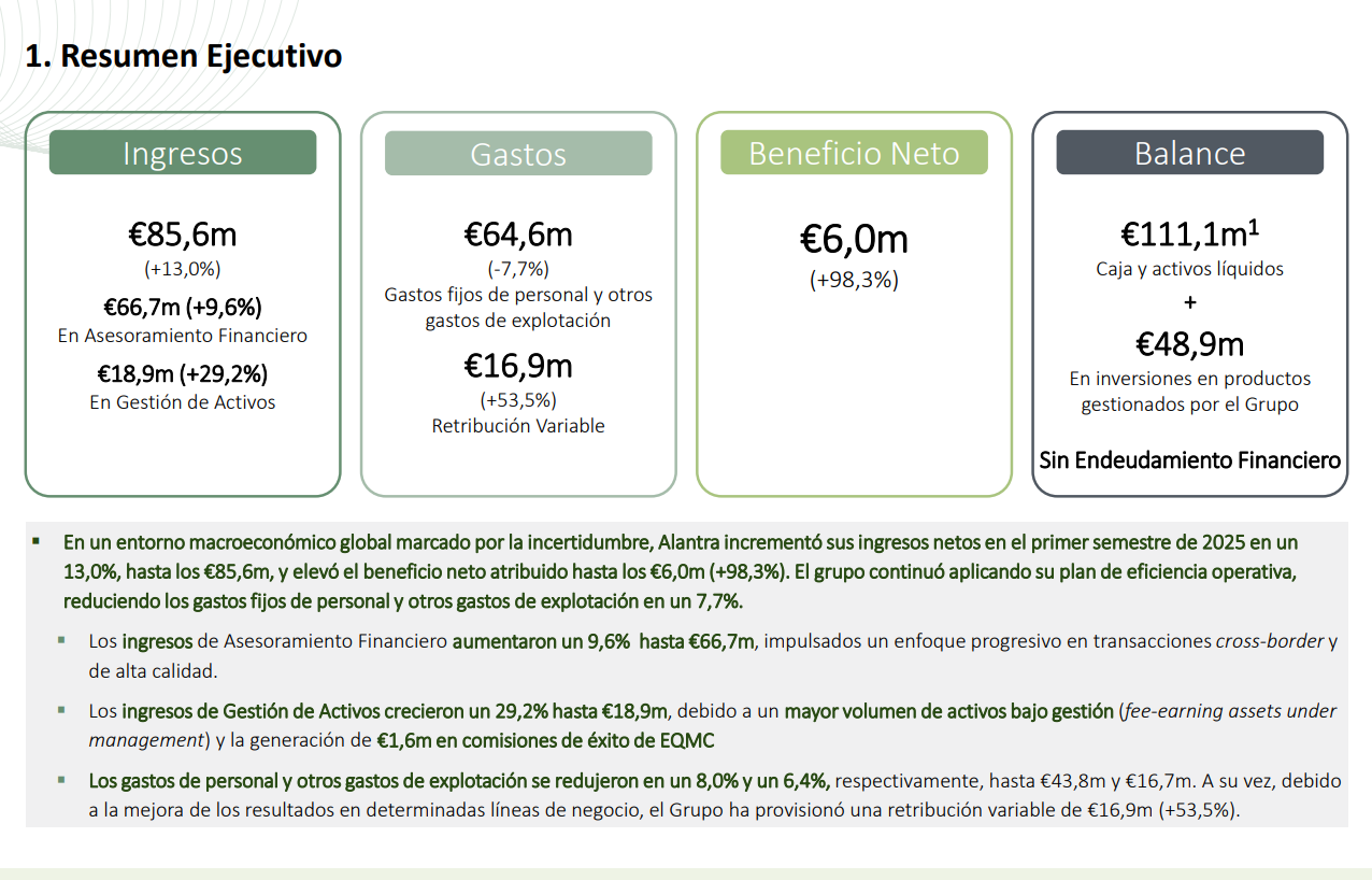 Resultados del primer semestre de Alantra