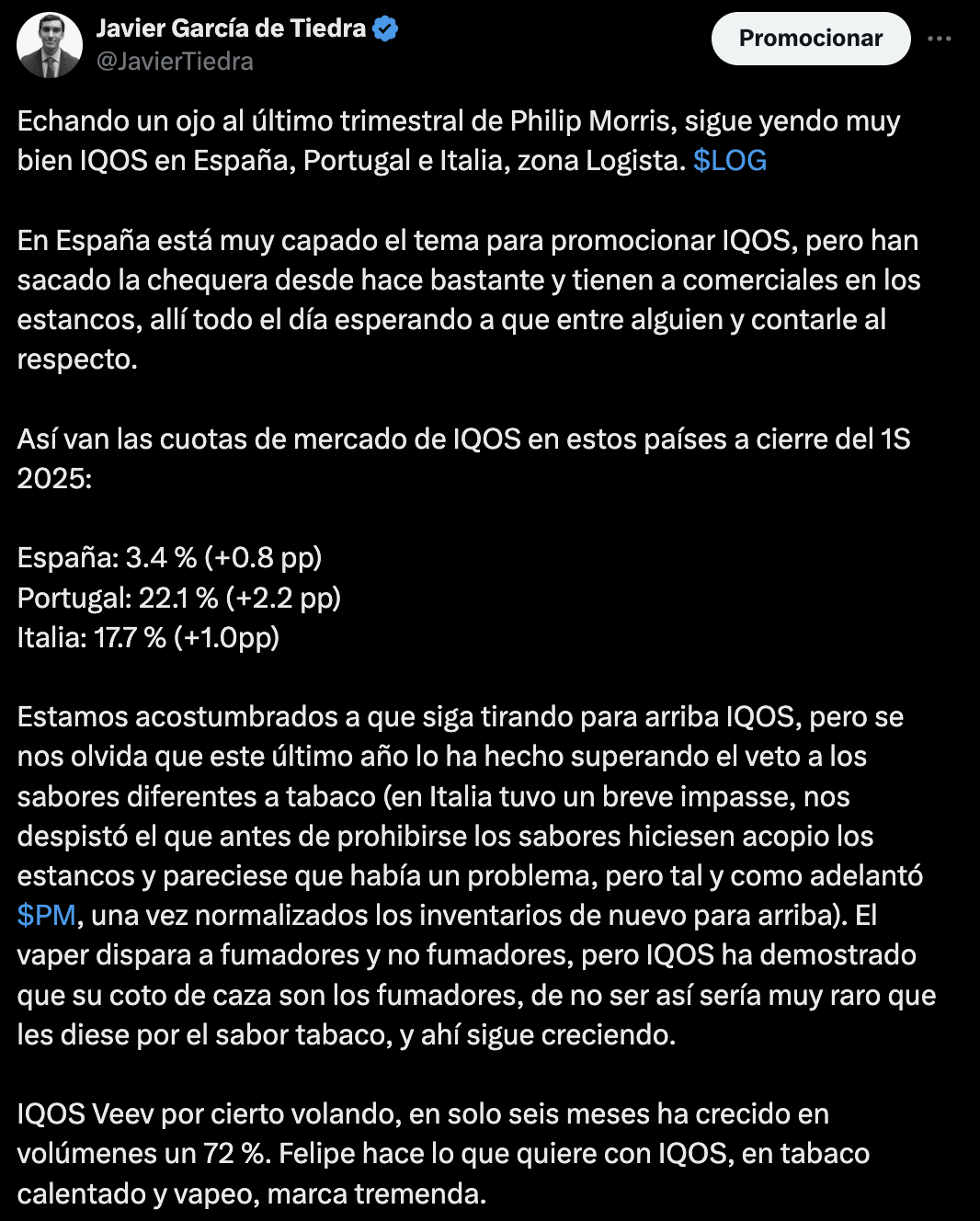 Sigue bien IQOS en los países territorio Logista, les dejo un comentario tras leer el último reporte de Felipe.
