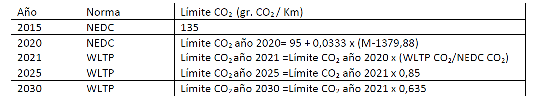 NUEVOS LÍMITES LEGALES DE CO2 ESTABLECIDOS PARA LAS FLOTAS DE VEHÍCULOS DE LOS OEMs