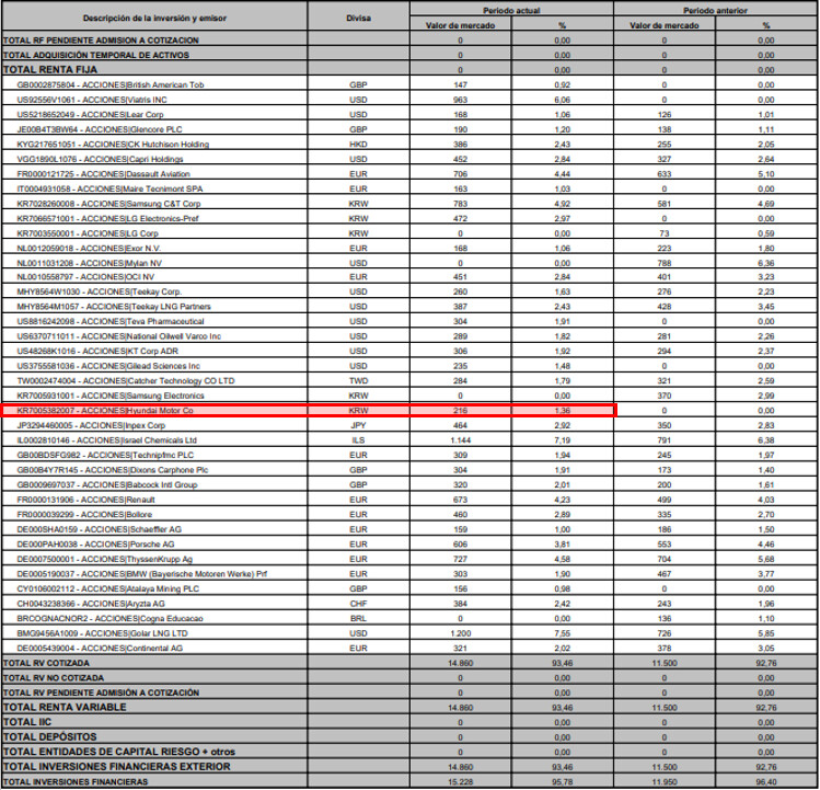 En el caso del Cobas Grandes Compañías, parece sólo contaba a 31 de diciembre con un 1,36% en Hyundai Motor Co.