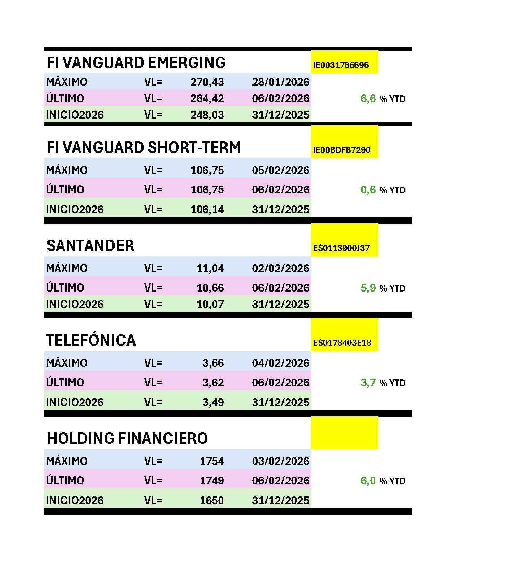 - Conoce vd ya seguramente los pesos que llevo yo. Los publico a menudo en el hilo que ya sabe. Distan algo de ser mis pesos ideales, y no rebalanceo con la celeridad que querría por motivos diversos e irrelevantes para el caso que nos ocupa.