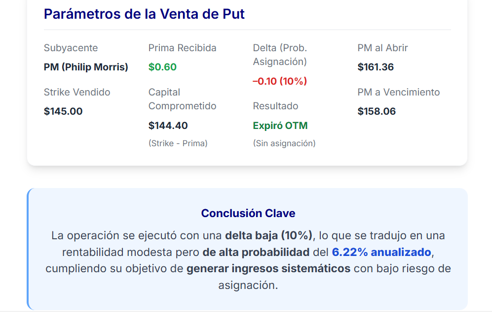 Principalmente, para asegurarme de que la put anterior ha expirado sin asignación, y así tener claro que puedo abrir una nueva sin duplicar riesgo ni complicaciones.