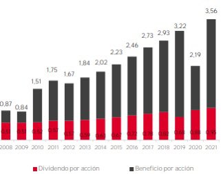 Pero para saber qué depende de qué, vamos a imaginar que estamos a finales de 2007 y sabemos con certeza lo que va a acontecer en los próximos 14 años en términos de beneficio y dividendo por acción.